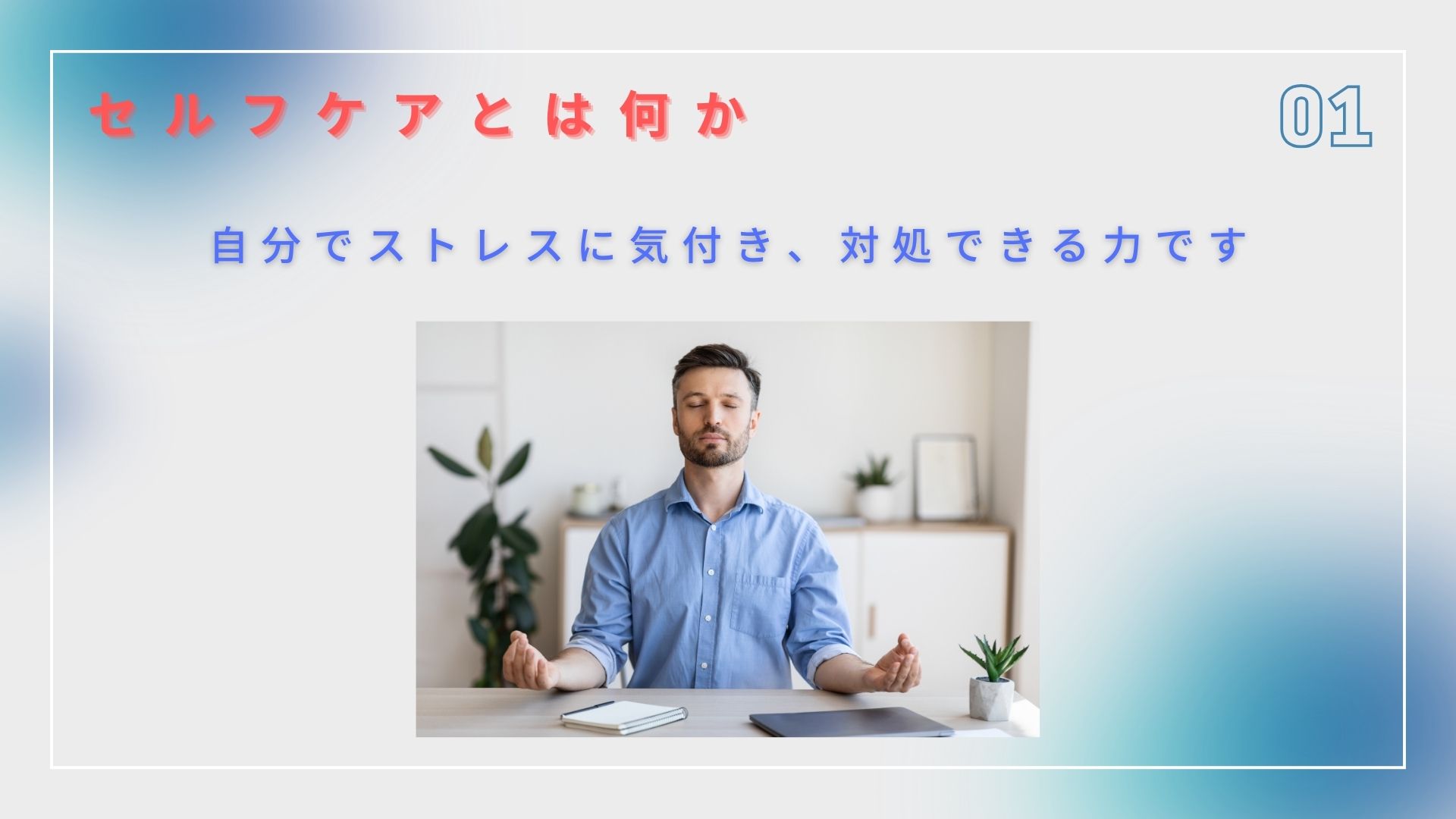 また、セルフケアとは、自分(セルフ)をケア(大切にする)することです。